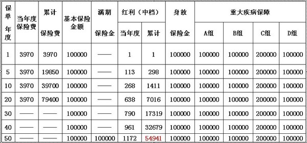 2、保費低廉,保障長久,特別適合中年人群購買。
